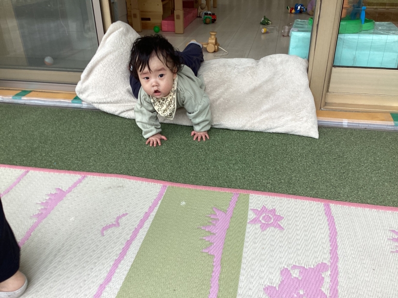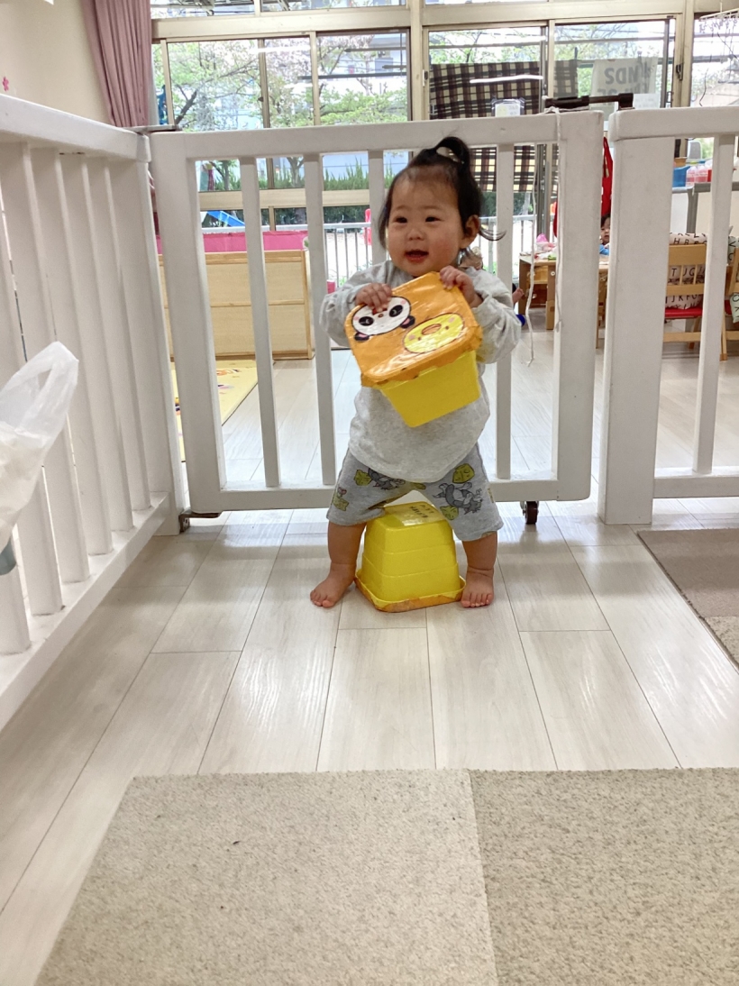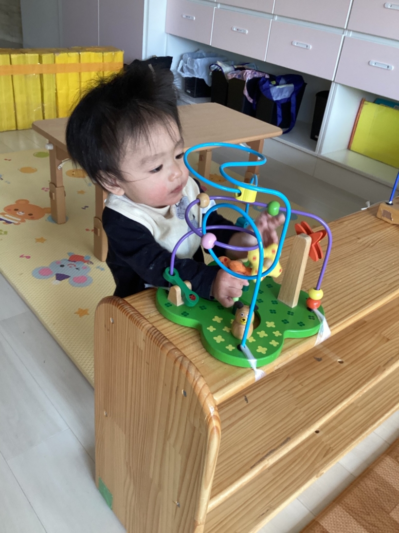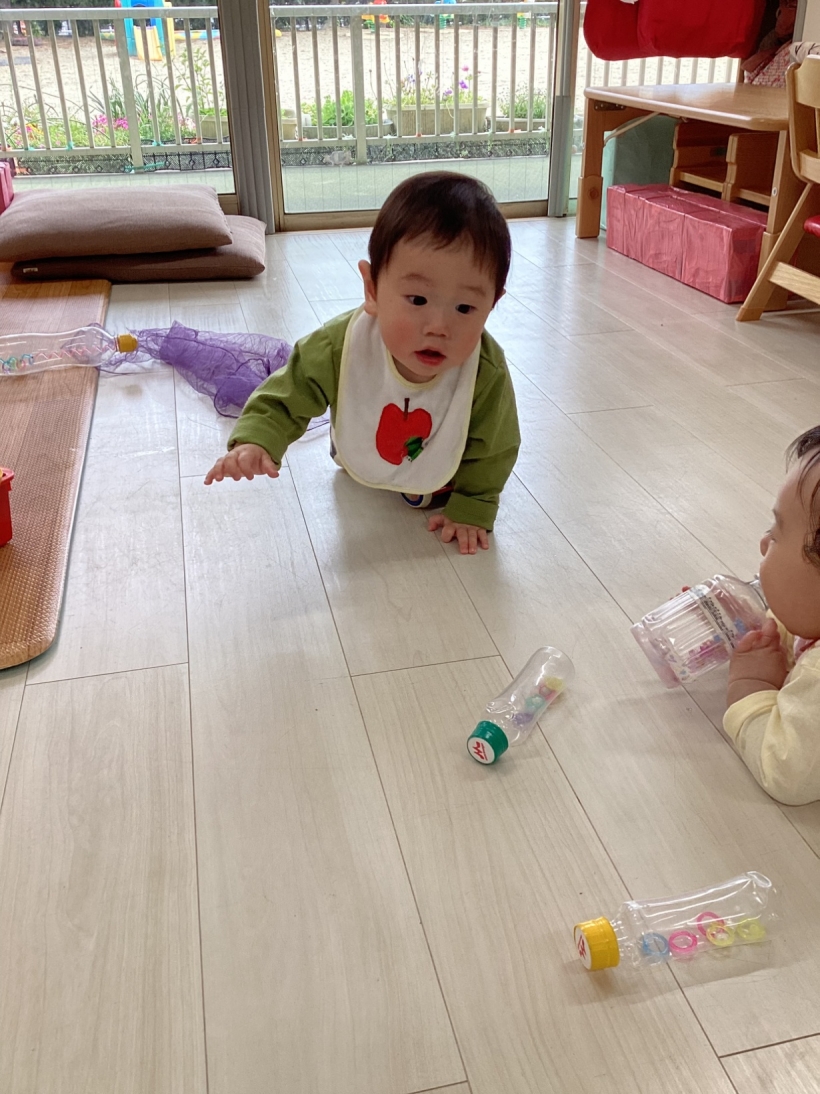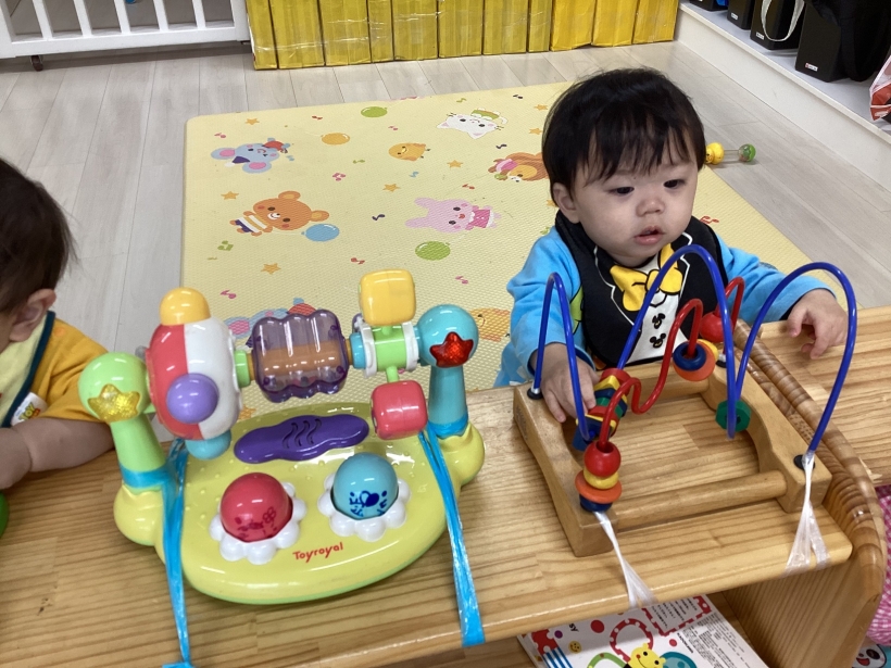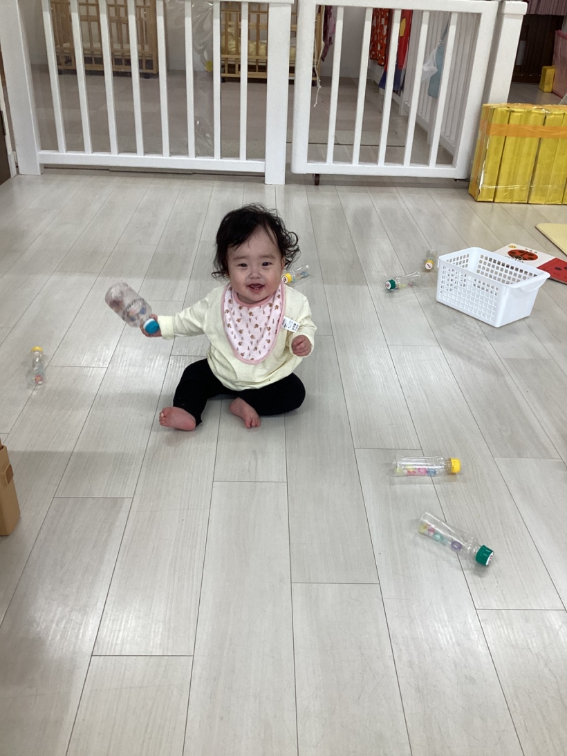 好きなおもちゃをみつけてハイハイで取りに行ったり、音楽にあわせて体を揺らしたり、歩いて部屋の中を探索したり‥