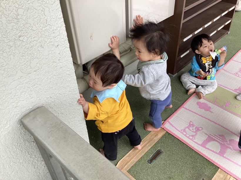 天気のいい日はテラスでも遊びます。