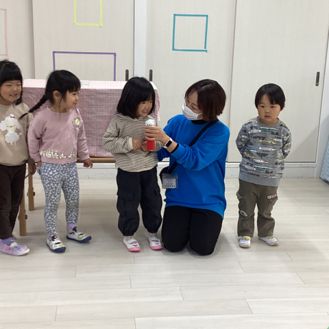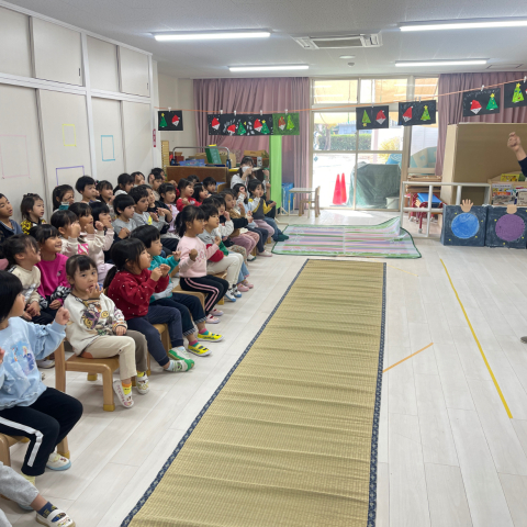 11・12月の誕生会を行いました。 まずは誕生児のインタビュー。恥ずかし...