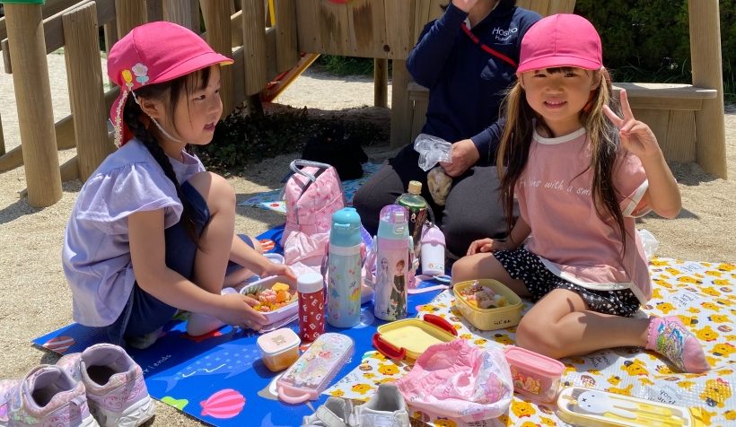 お弁当を食べ終わると「おべんとうおいしかったね!」「また、おべんとうたべたいな」と終始嬉しそうな子どもたちでした!