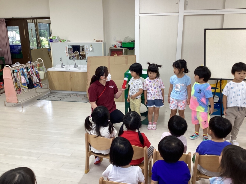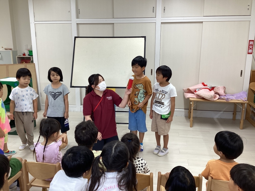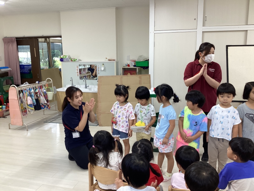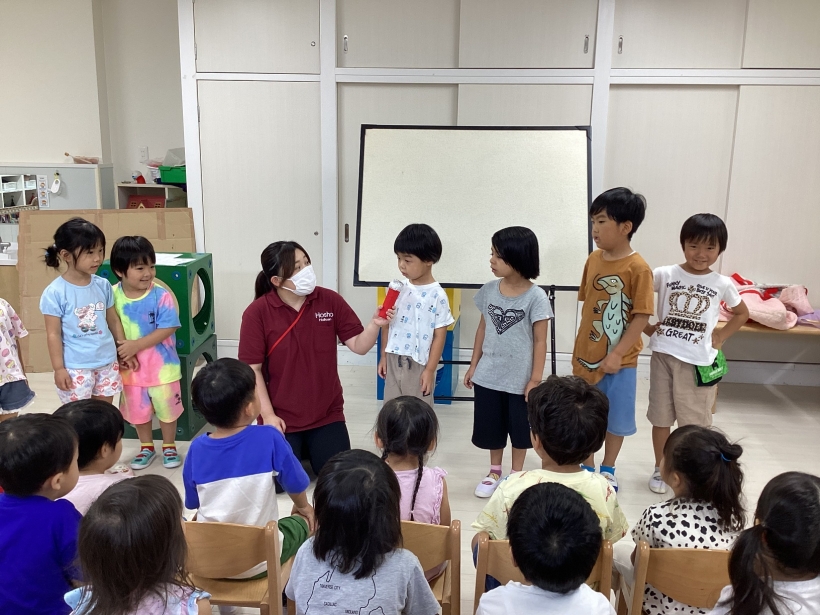 「誕生日のお友だち、前に出てきてください」と声をかけると、恥ずかしそうにしながらも