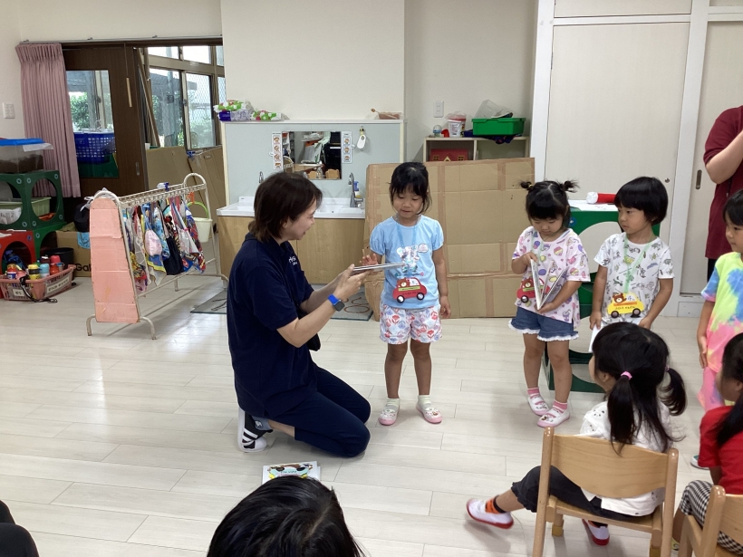 受け取ると絵本を見たり「おめでとう」とお友だちからお祝いしてもらい嬉しそうでした!