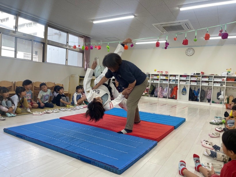 ですが、園長先生が投げ飛ばす姿を見ると、みんな声が出なくなるくらい驚いていました!