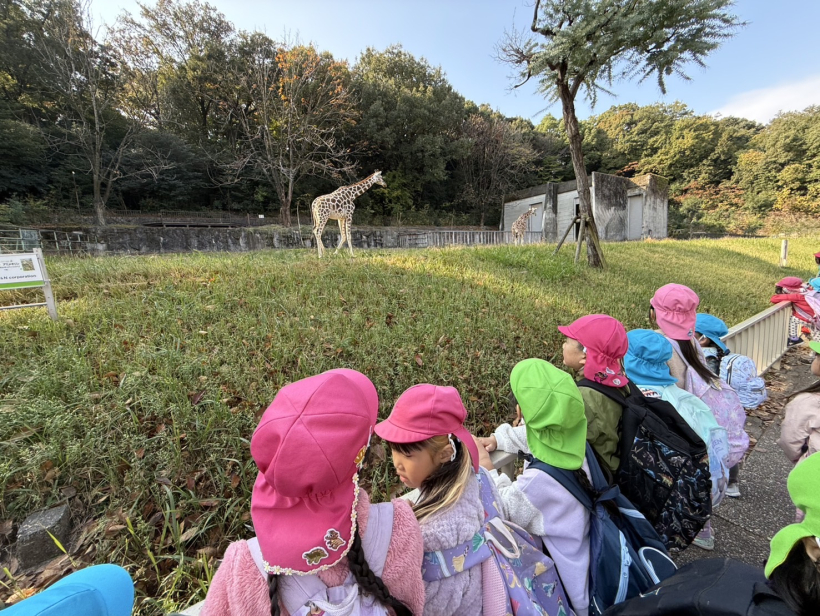 きりんが動くたびに「こっちくるよ!」と友だちと
