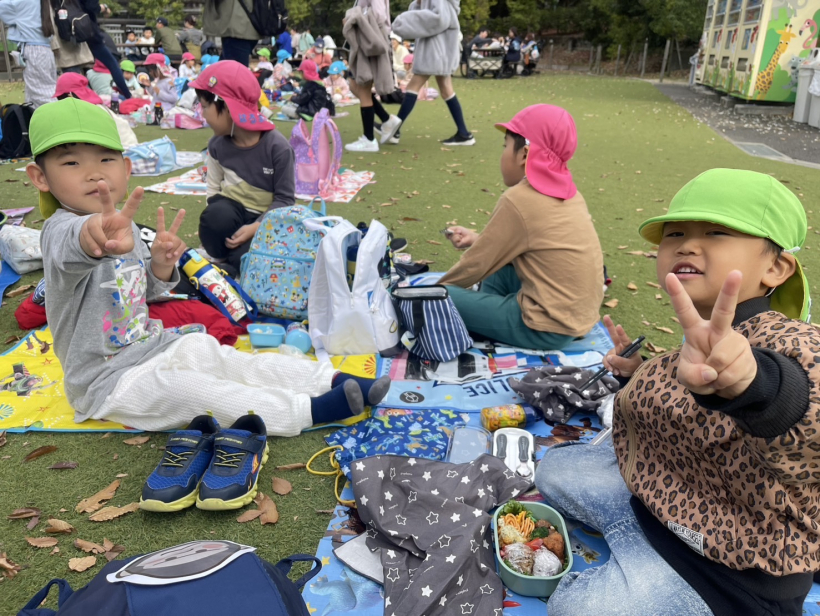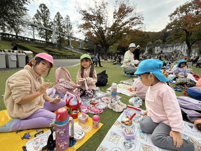 「おなかへった!」「おべんとうみせて!」と友だちと話しながら