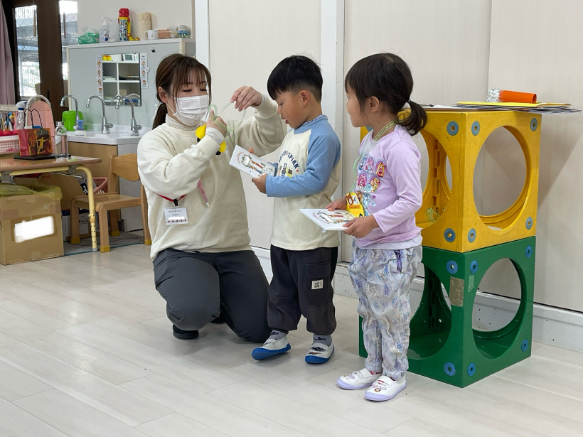 ほうしょう保育園クイズでは担任の先生に関する問題を出すと先生の顔をじっと見ながら考える子もいました。