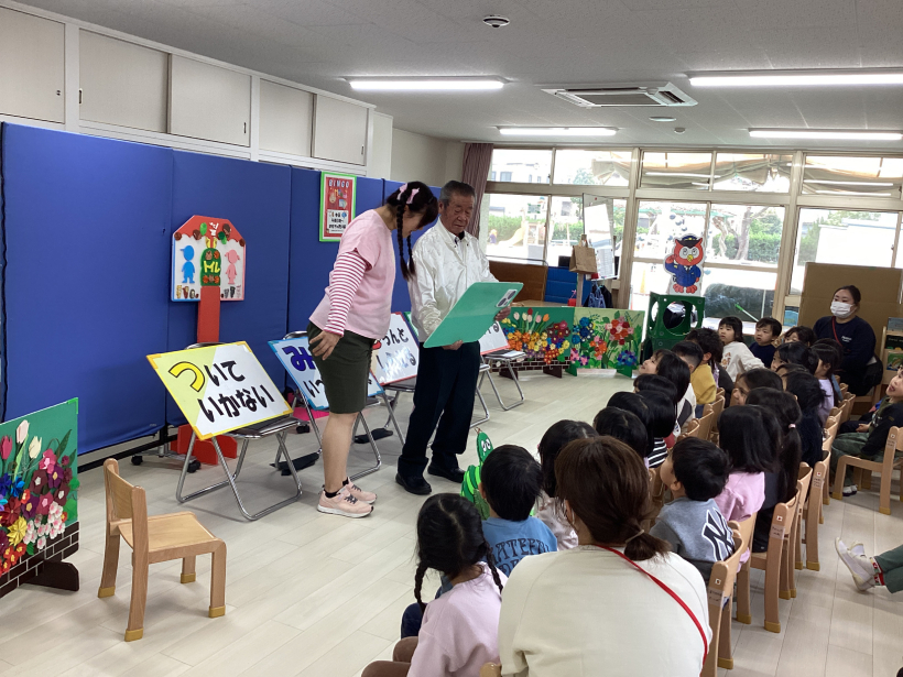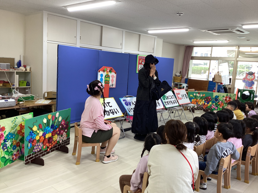 知らない人に声をかけられたらどうしたらいいのかについて、『つみきおに』のお約束を教えてもらったり、劇を見て学んでいきました。