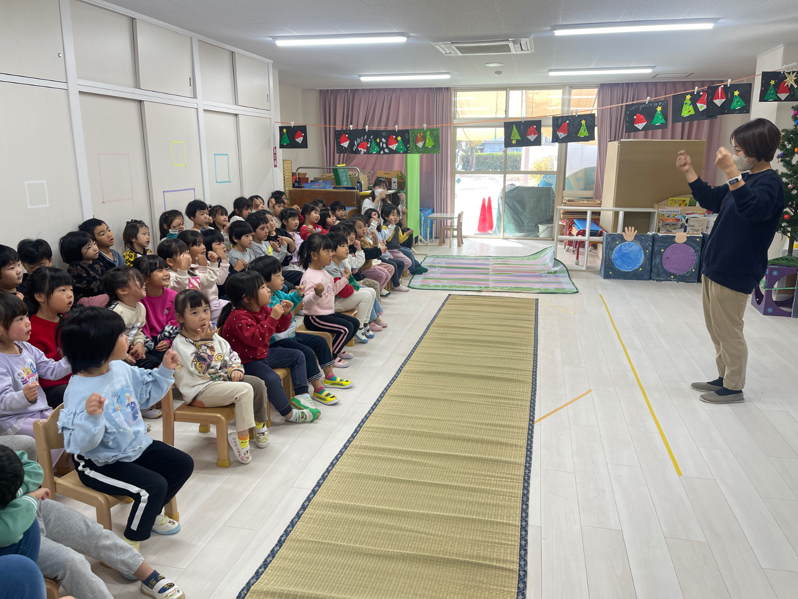 『あわてんぼうのサンタクロース』『さんぽ』の曲に合わせて歌ったり手拍子をして楽しみました♪