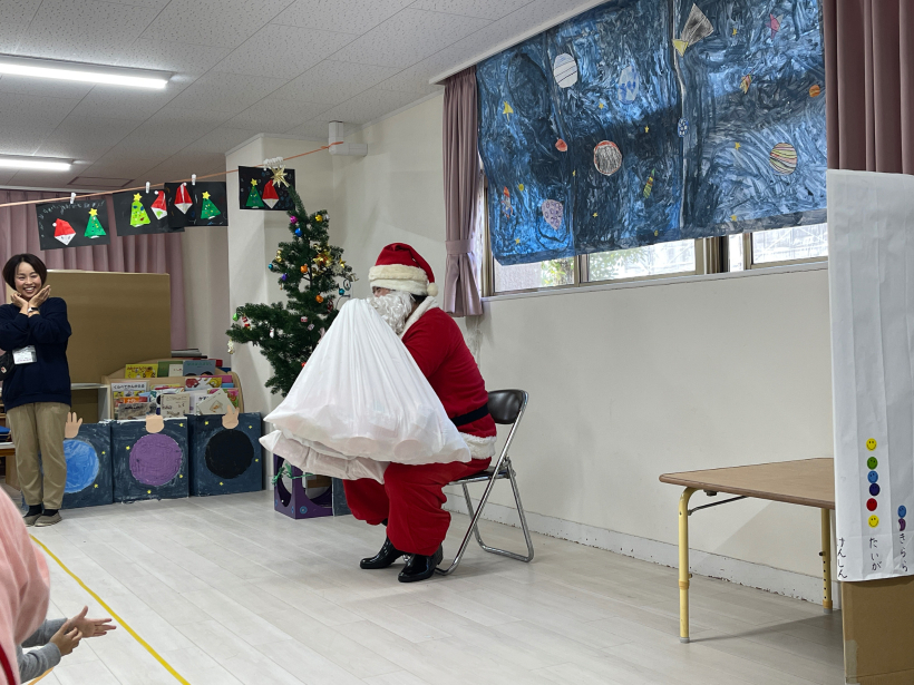 みんなで「サンタさーん!!」と呼ぶと、サンタさんがきてくれました!