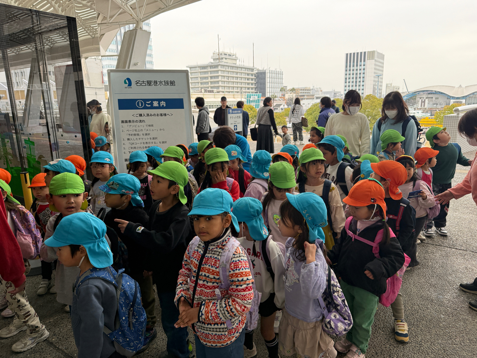 「まだかな!?早く入りたいなぁ」「イルカのショーがみたいなぁ」