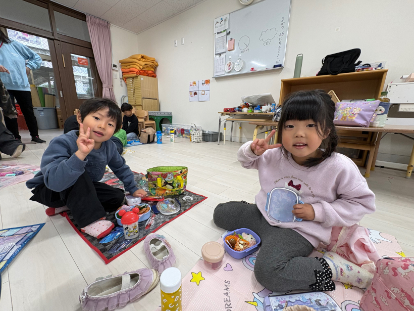 あっという間に完食したり、お弁当に中身を見せ合ったりして楽しく美味しそうに食べていましたよ!