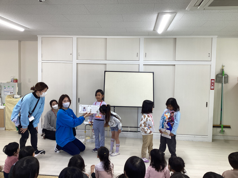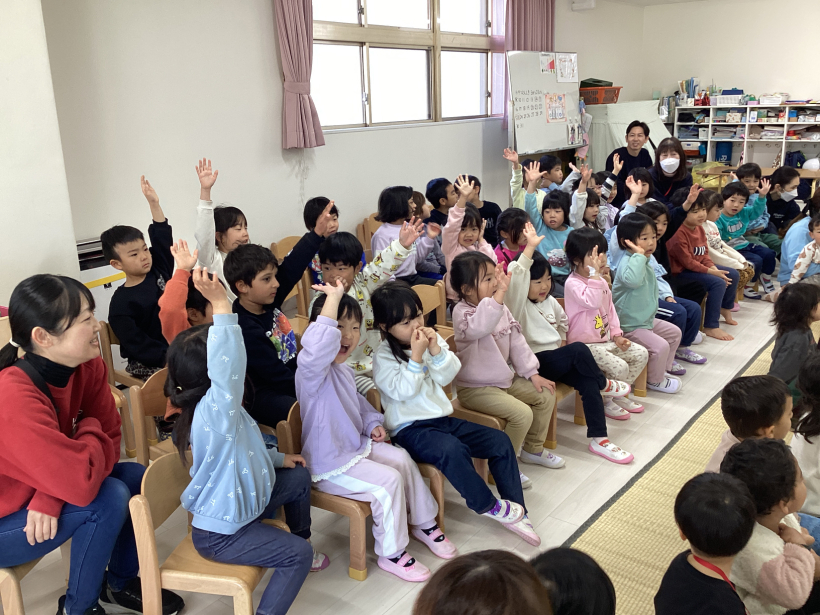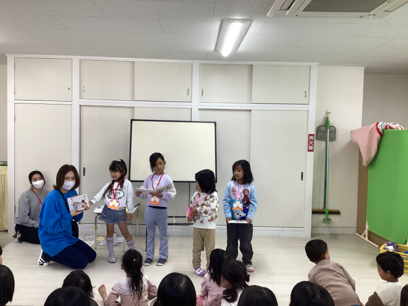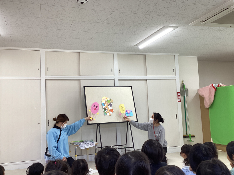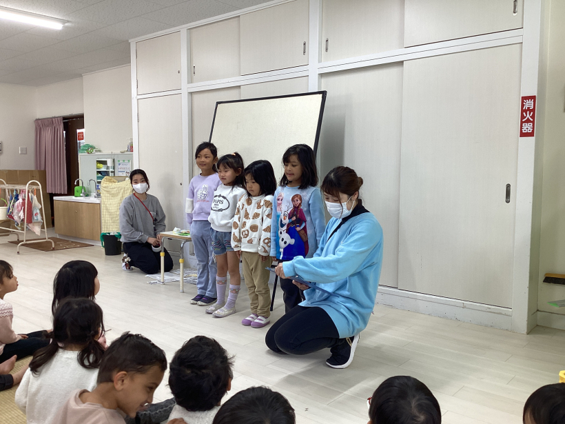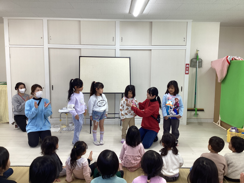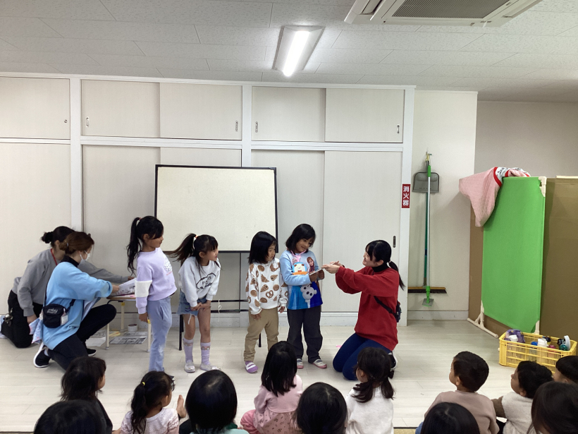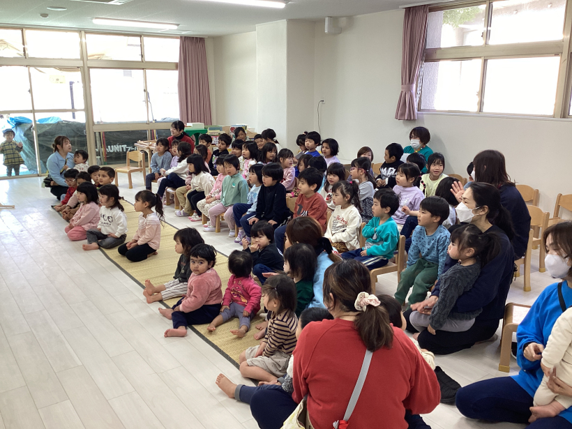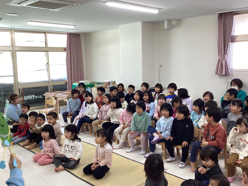 出し物のペープサート「ヤダットちゃんの誕生日」にみんな夢中で鑑賞し、