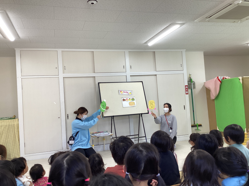 誕生児のお友だち以外にもピーマンやナスが苦手な子が多く、みんな手を挙げていました。