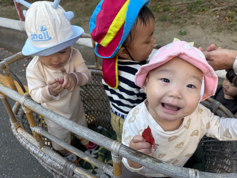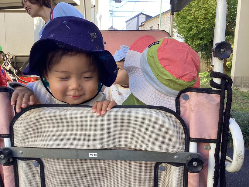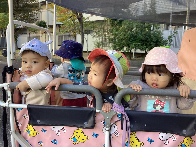 周りの景色を眺めたり、カートから手を伸ばし葉っぱを取ったり。
