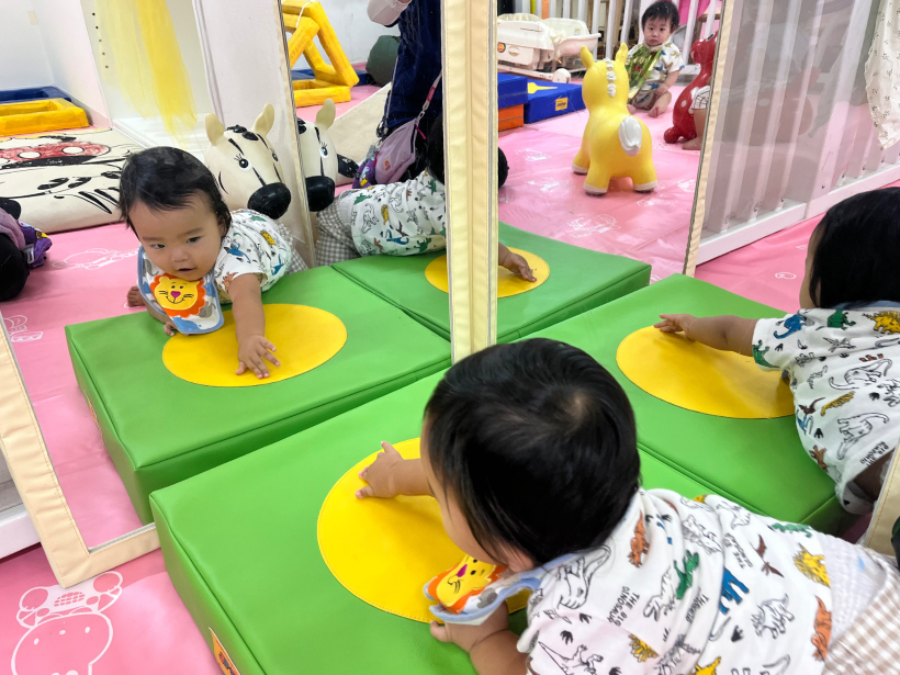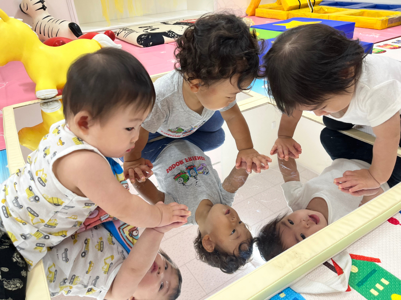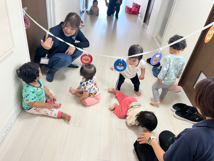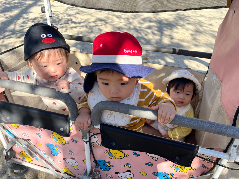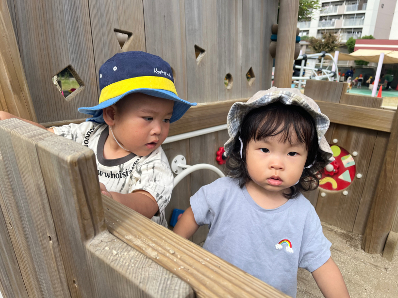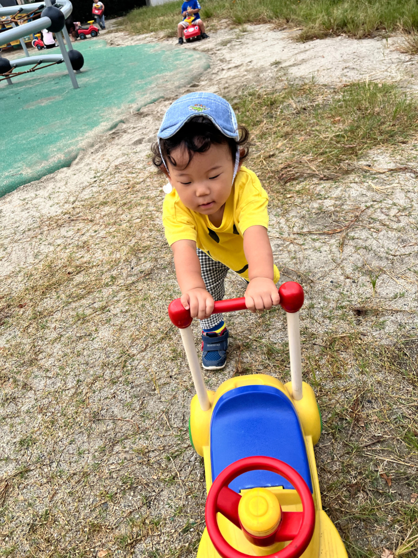ひよこぐみだより【10月】 ふれスポでは緊張してみんな固まってしまいましたが、普段はこんな感じで遊んでいました。 園庭や公園にも少しずつ慣れてきて、好きな場所を見つけて遊べるようになってきました。 だんだん涼しくなり、風の心地良さや植物を触って秋を感じながら遊んでいます。 幼児さん達が掘ってきてくれたお芋で、園庭で芋掘り体験をしました。自分で掘れて嬉しそうな表情も見られました。