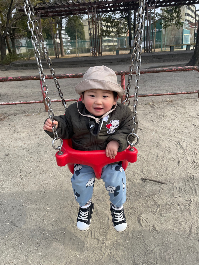 暖かい日には散歩に行き、電車を見たり、公園で遊びました。