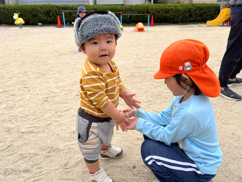 園庭では年上のお兄さんやお姉さんと遊ぶことも増えたり、クラスのお友だちと同じ遊びをしたりと交流も盛んになっています。