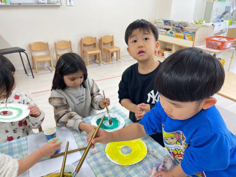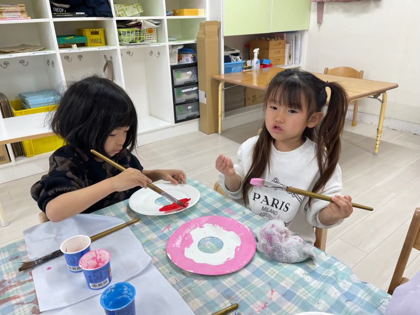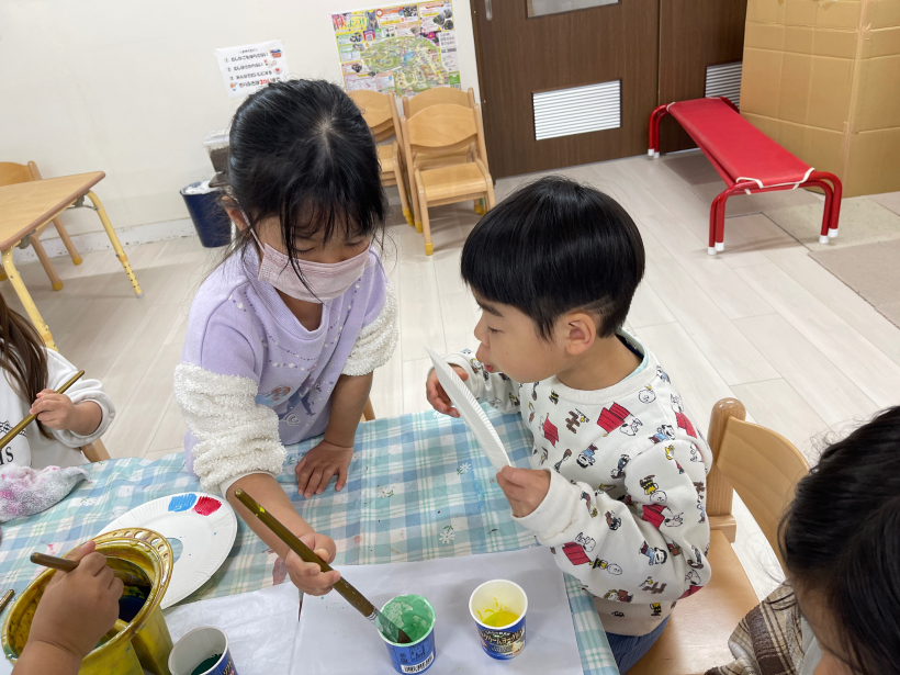 子どもたちが好きな色を絵の具でぬっていきました。
