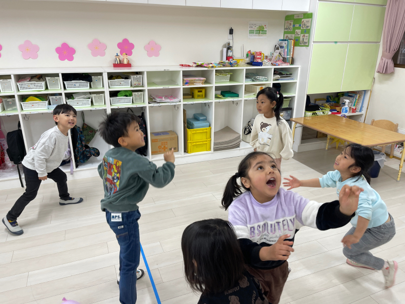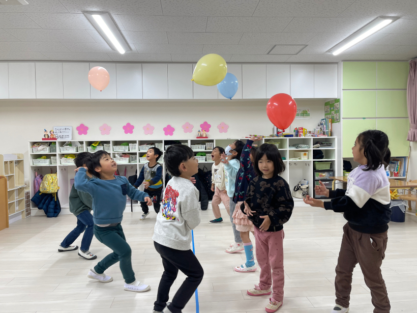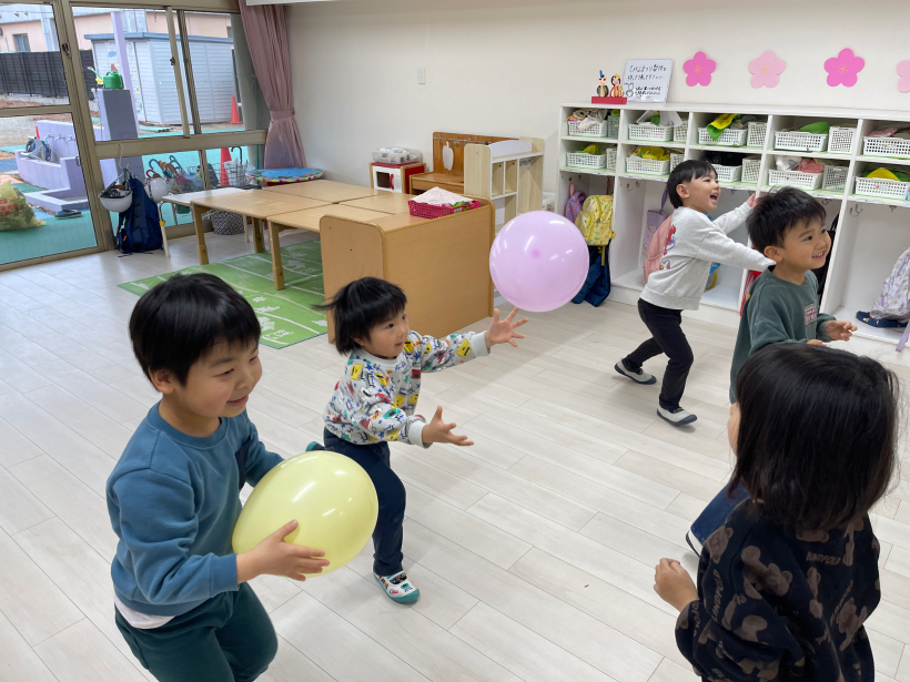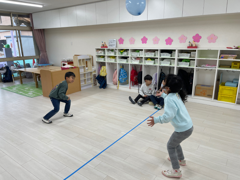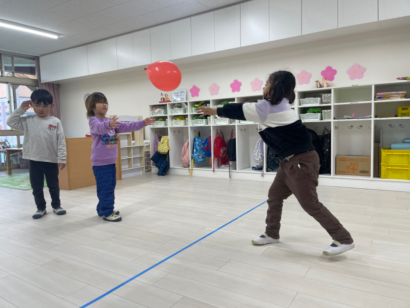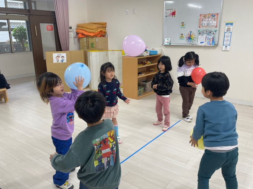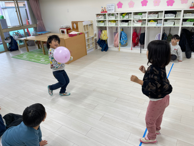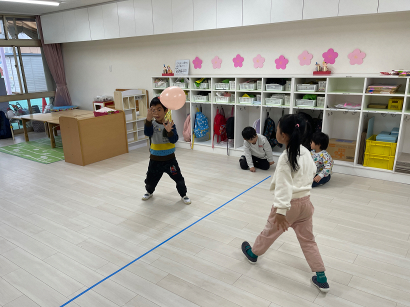 雨の日。室内ふうせんバレーは大盛り上がり!