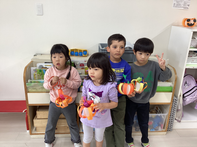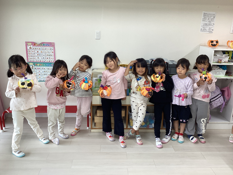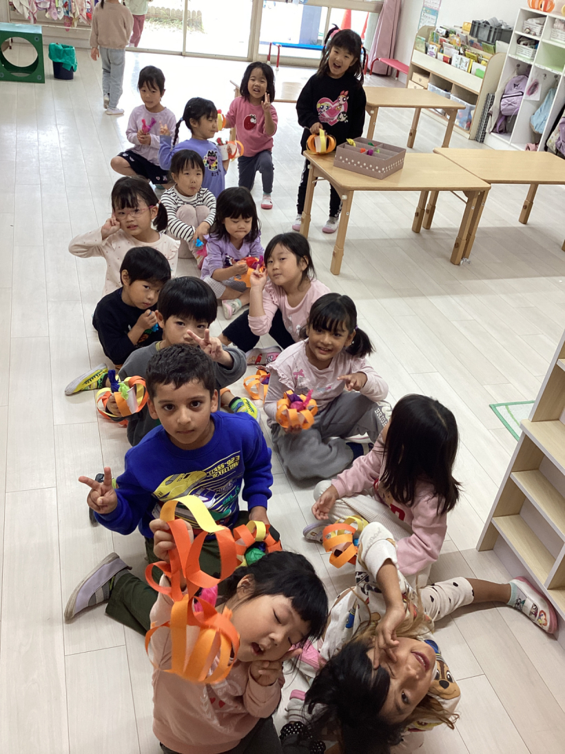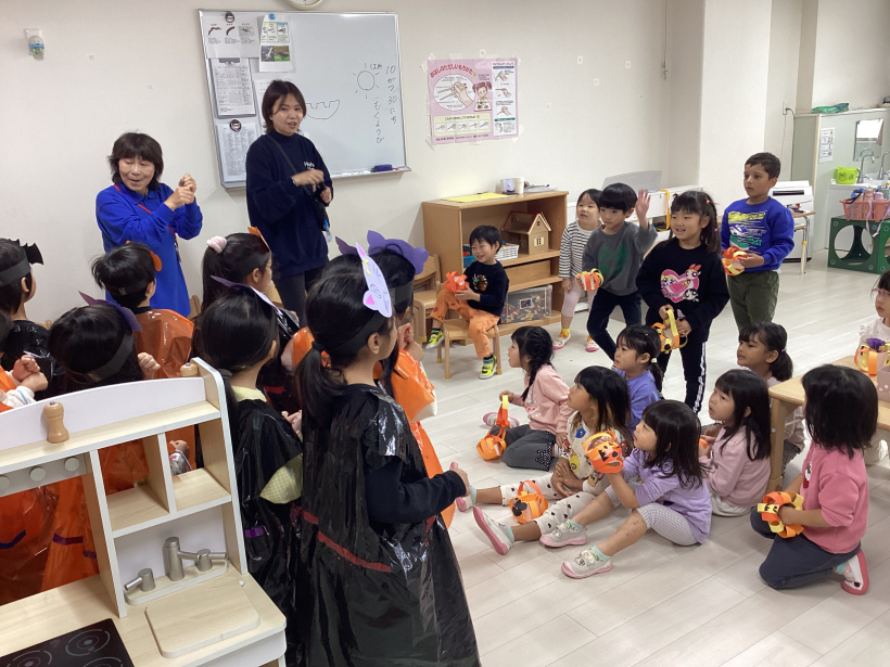 ぞうぐみさんが来ると「どうぞ!」とキャンディーをあげて、一緒にハロウィンの手遊びをして楽しみました!