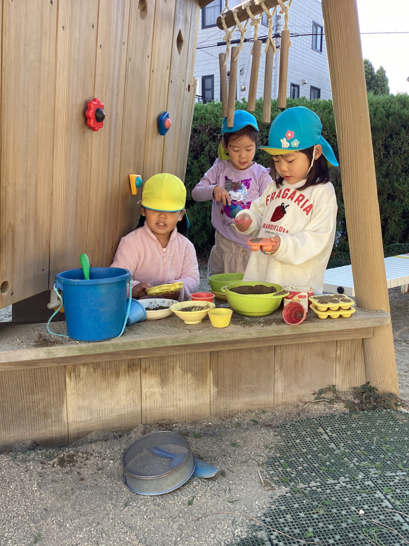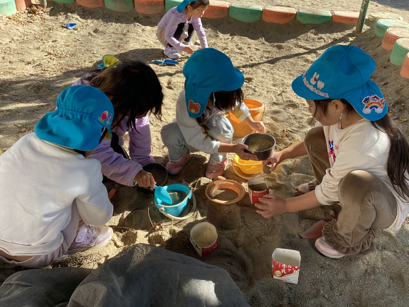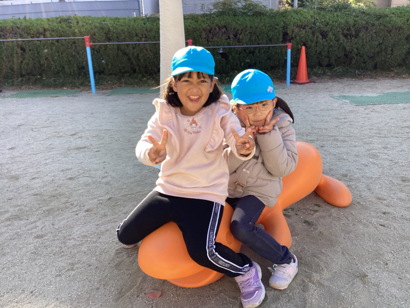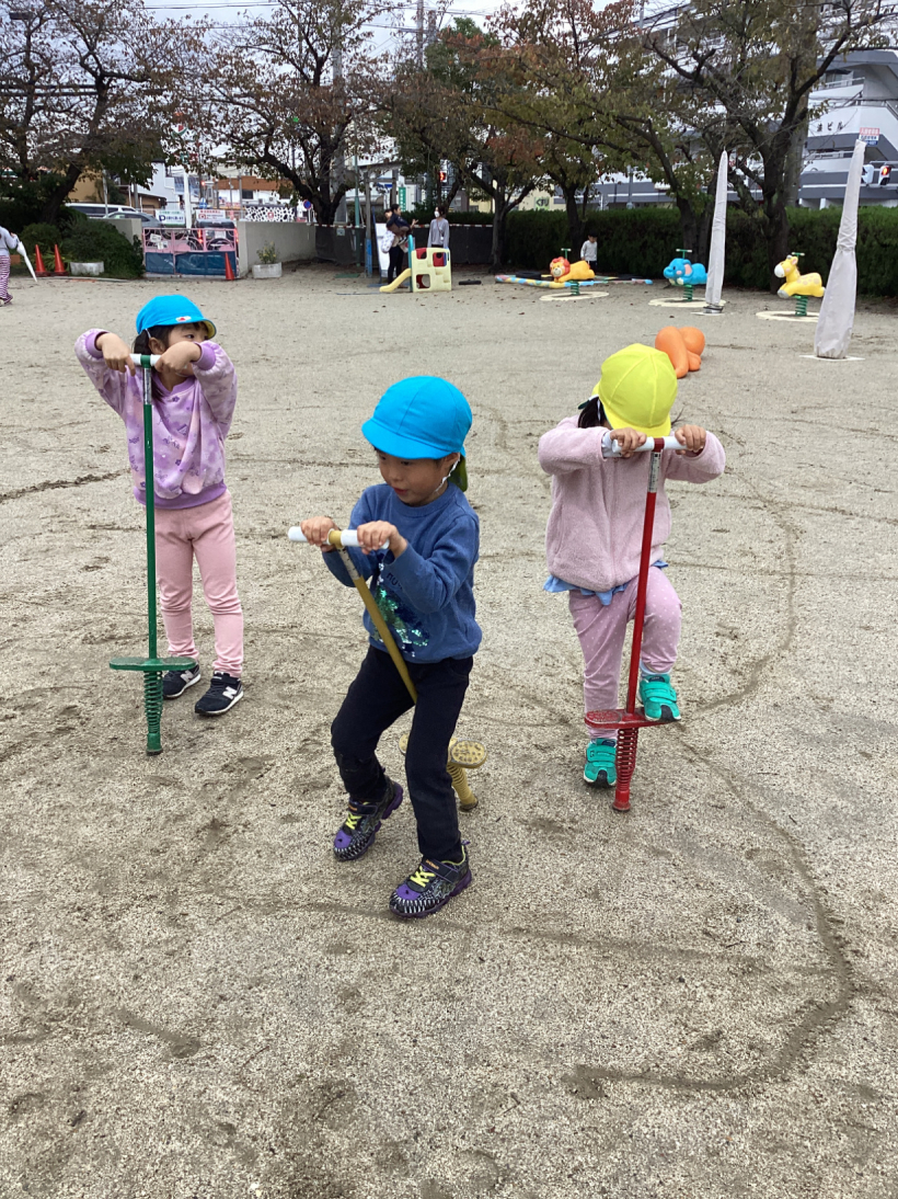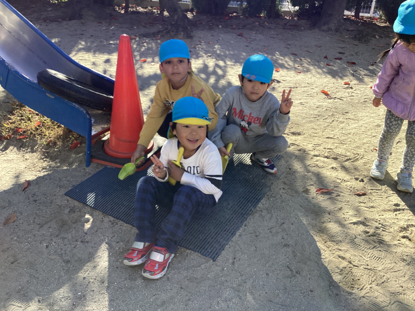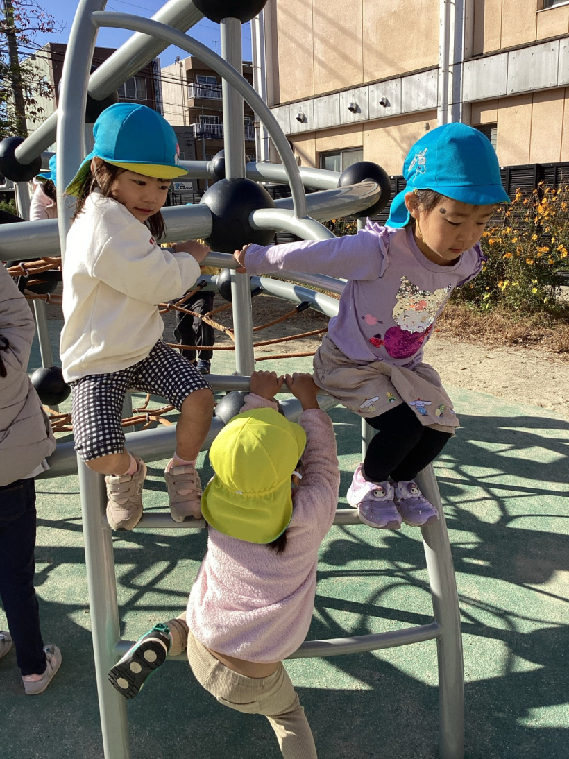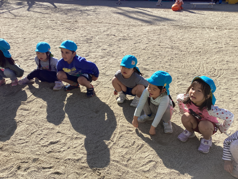昼夜の寒暖の差もだんだんと大きくなり、少しずつ冬の訪れを感じるようになりましたが、きりんぐみの子どもたちは戸外で元気いっぱいに体を動かして遊んでいます。