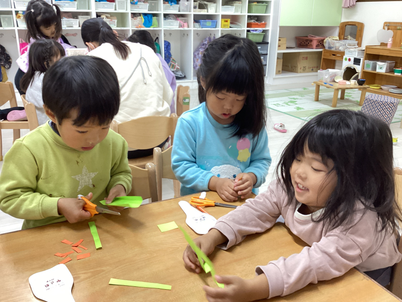 お部屋では製作がブームなきりんぐみさん。