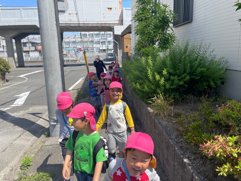 「きりんが道路側を歩くよ」と年下の友だちを優しくリードしていました。