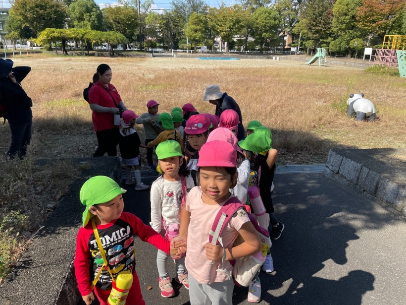 帰りもきりんぐみさんと仲良く手をつないで「おなかへった、きゅうしょくなにかな?」と楽しそうに話していました。