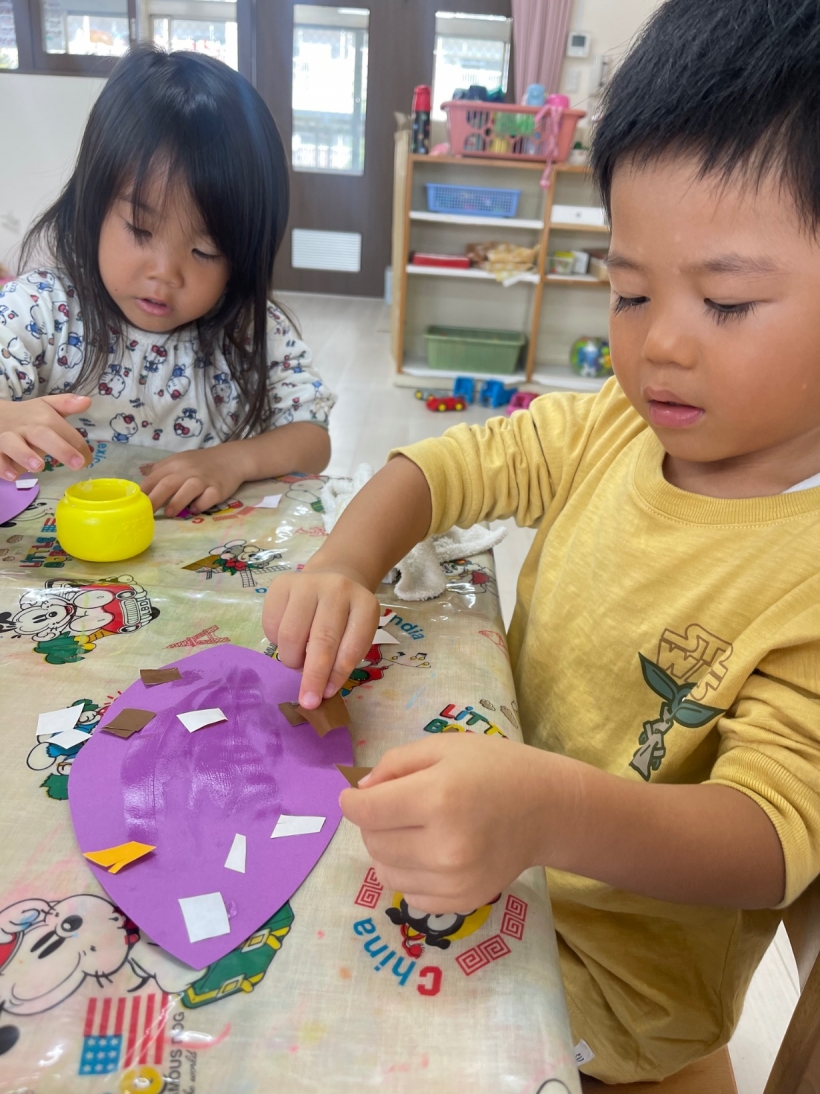 「したのほうまでほったよね!おおきいおいも2こもとったんだよ!」と楽しかったお芋掘りを思い出しながら作りました。