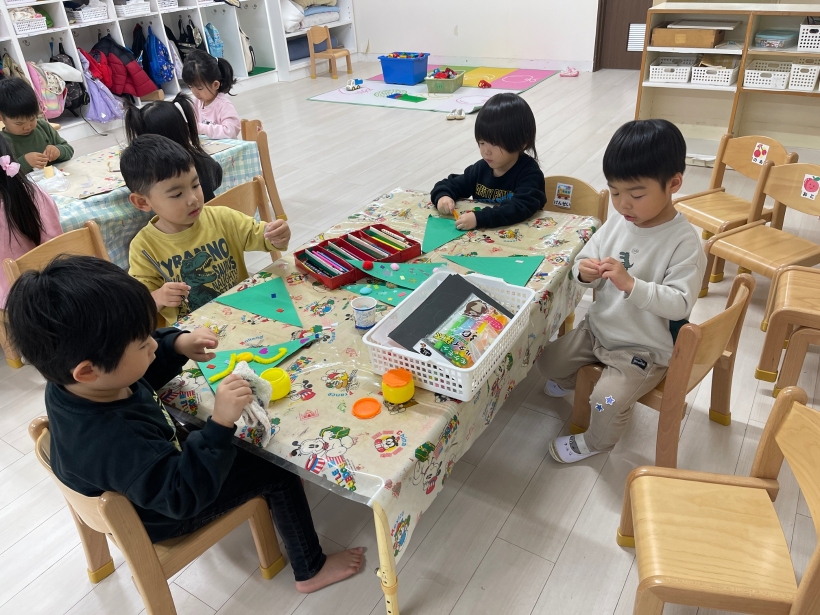 「サンタさんは寝てる時に来るんだよ。」「サンタさんに〇〇くれるようにお願いしたの」と友だちと話しながら、期待に胸を膨らませていました。
