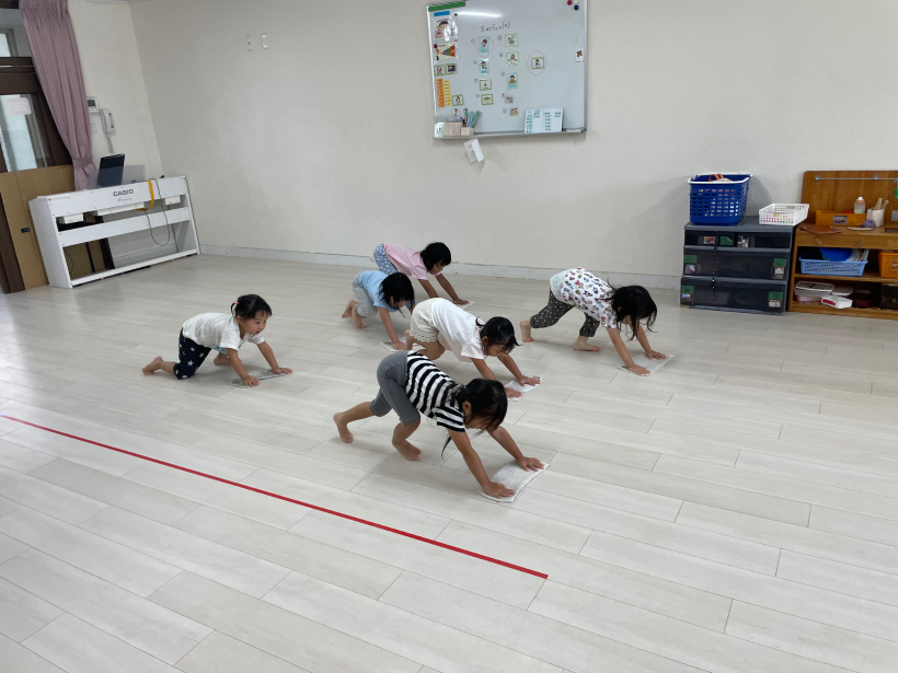 「よーいどん!」で一斉にスタートして床を雑巾でピッカピカに☆
