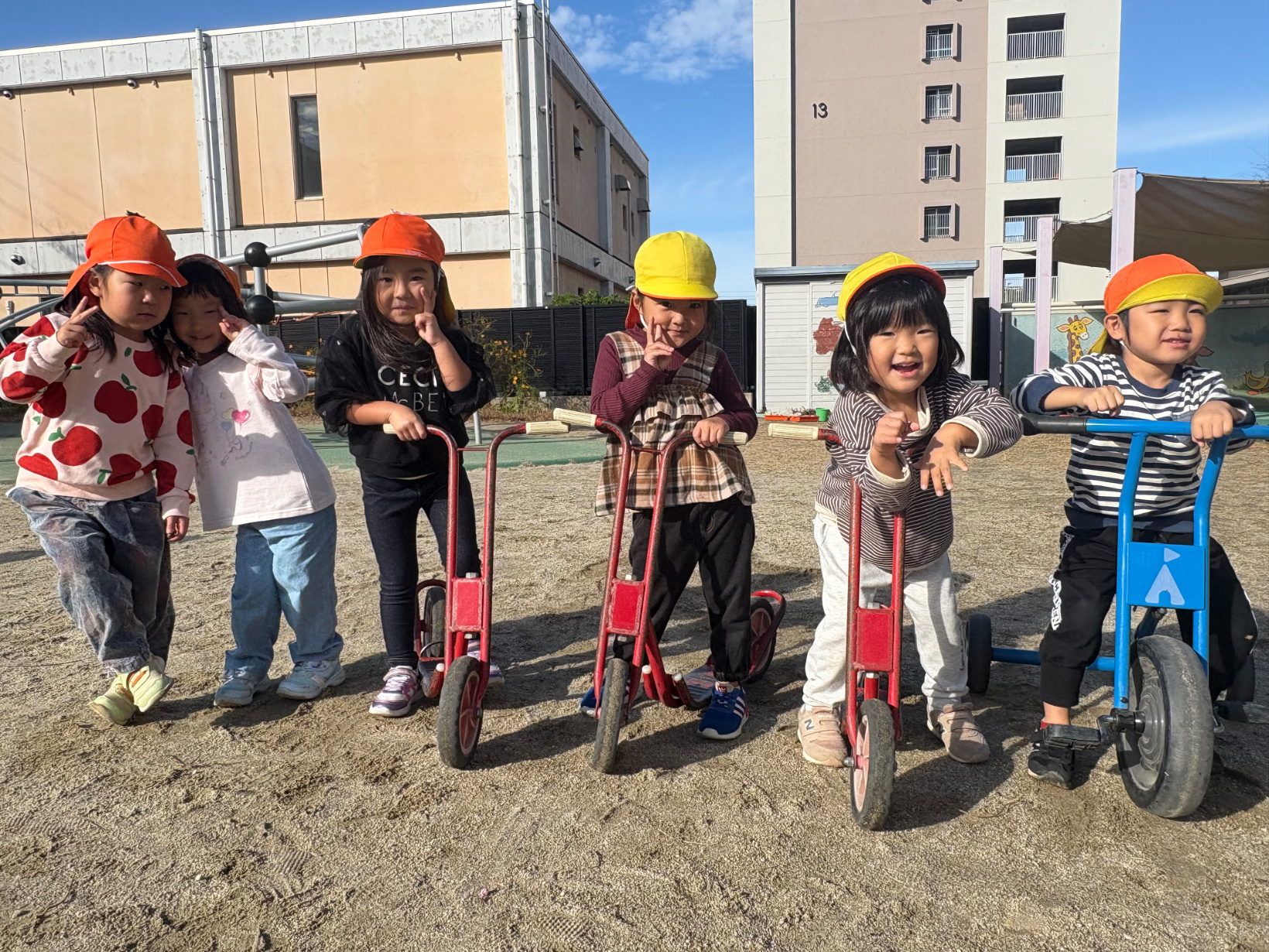 年少になって最初の頃は、なかなか上手く乗れず苦戦していたのに、いつの間にか園庭中を駆け回れるようになりました。