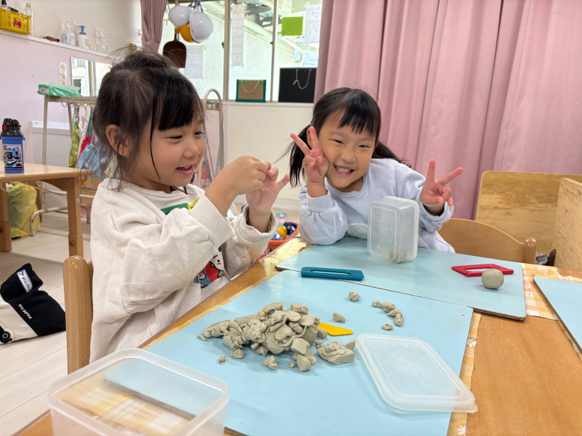 体操教室、身体測定でちょっぴり疲れたなぁ…となったのか?この日はみんな粘土をしていました!