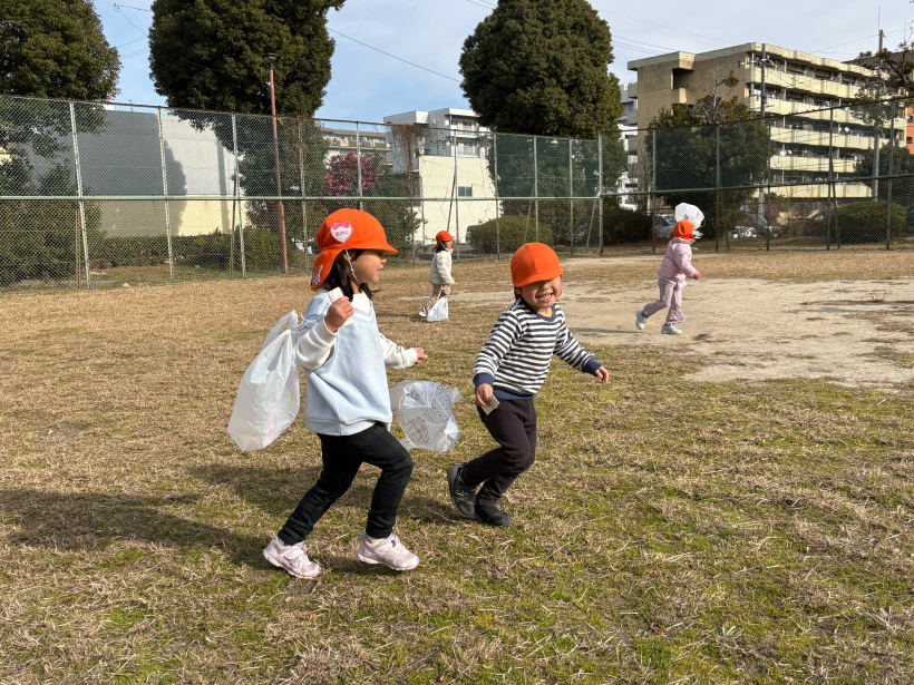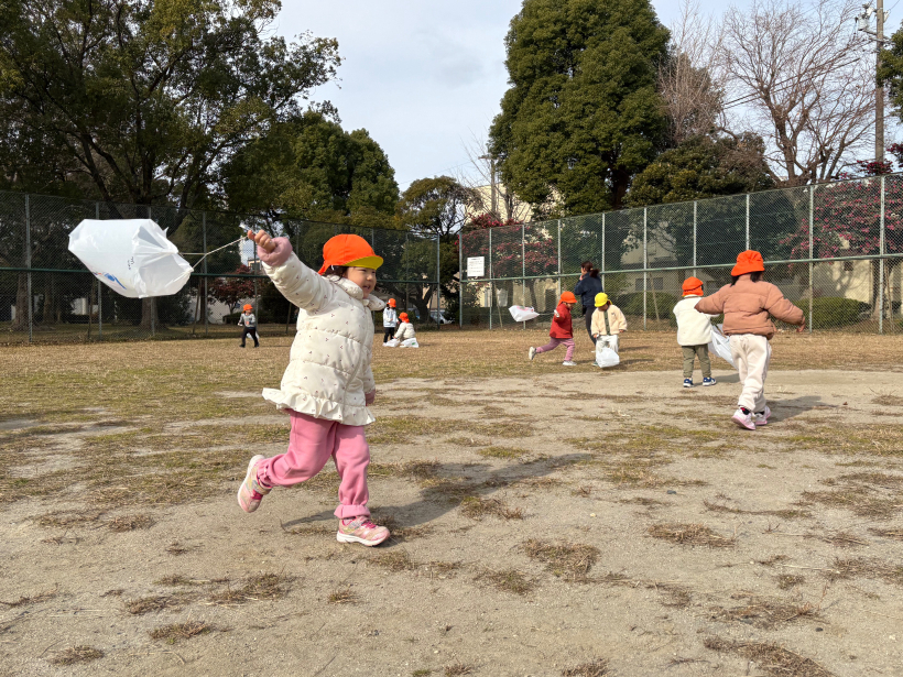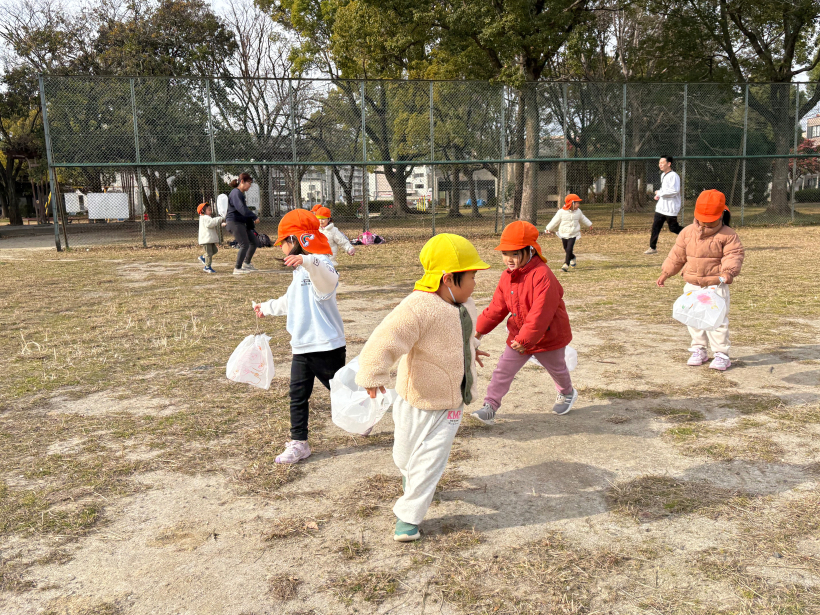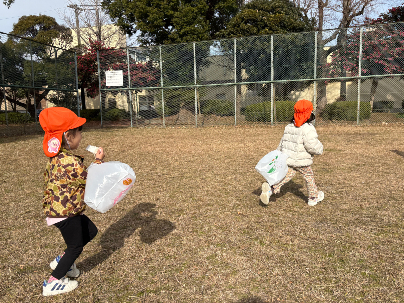 「先生も走って!」「こっちだよぉ〜」というお誘いを受け、保育者もたくさん走ってクタクタでした(笑)