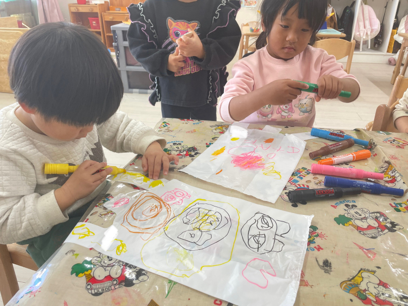 好きな絵を描いたり、模様を描いたりして楽しんでいました!