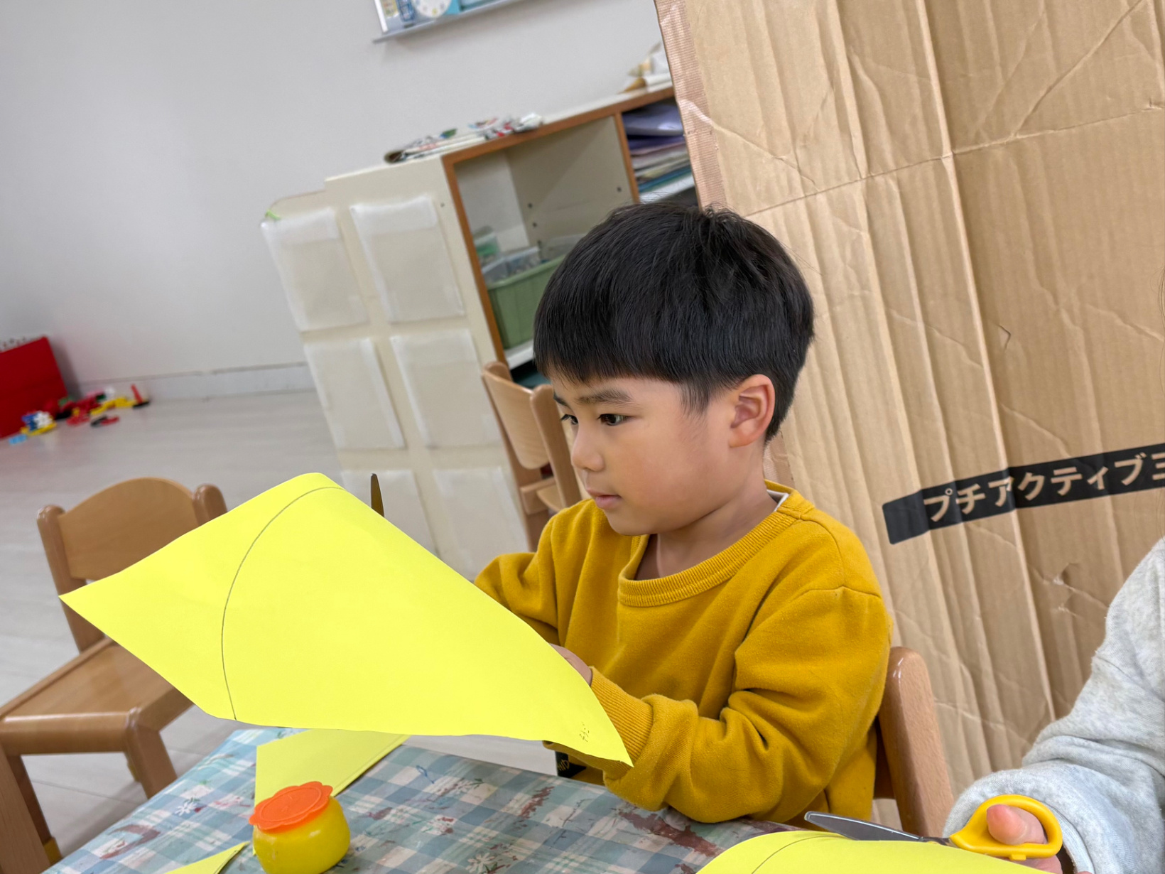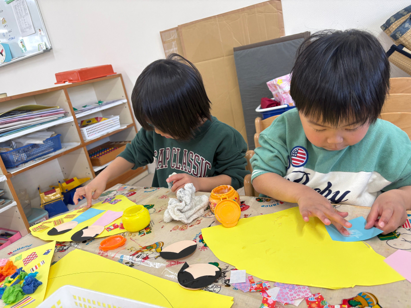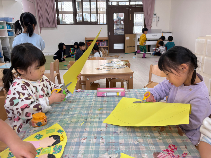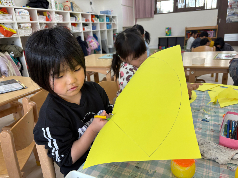 紙を動かしながら線を見て慎重に切っていました。途中で諦めそうになりながらも、みんな最後まで自分で切ることができました!!