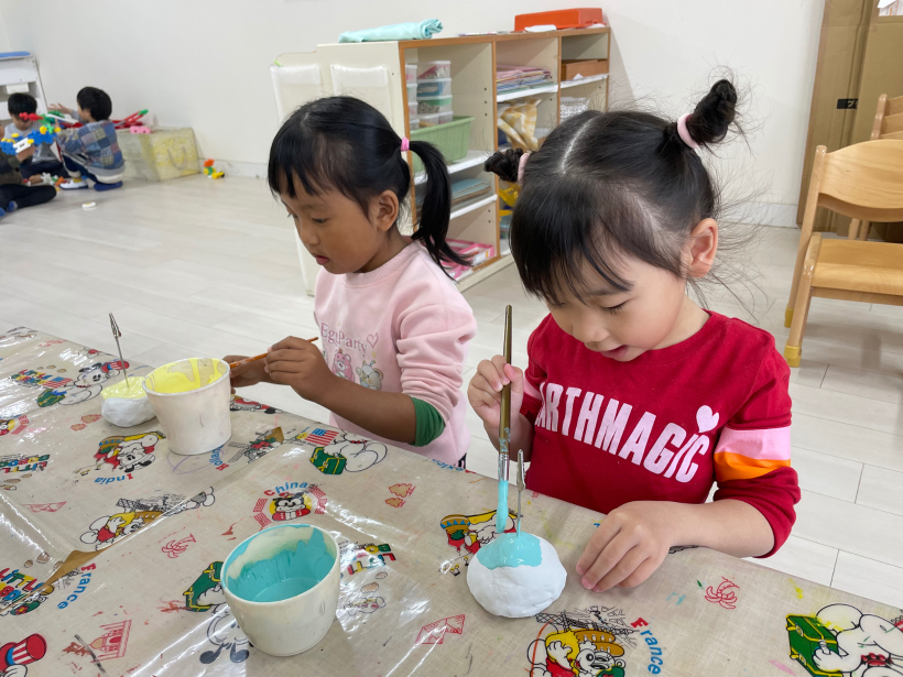 「あ、ここまだ白い!」「きれいだね〜魔法みたい!」と呟きながら塗る子もいれば、まるで職人のように黙々と進める子もいました!