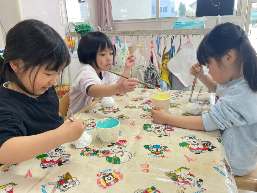 こぐま組は、紙粘土を丸く成形し、メモスタンドを刺して色を塗りました。