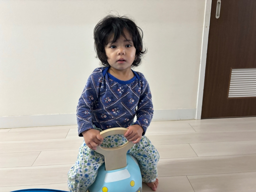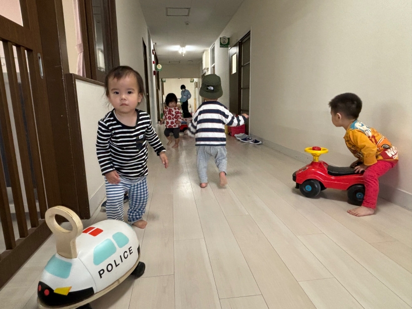 室内でもコンビカーが人気で廊下のドライブを楽しんでいます。