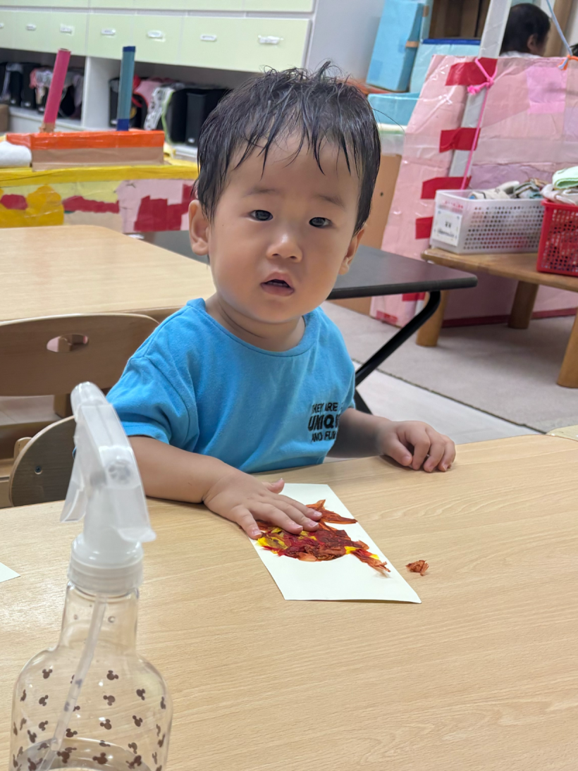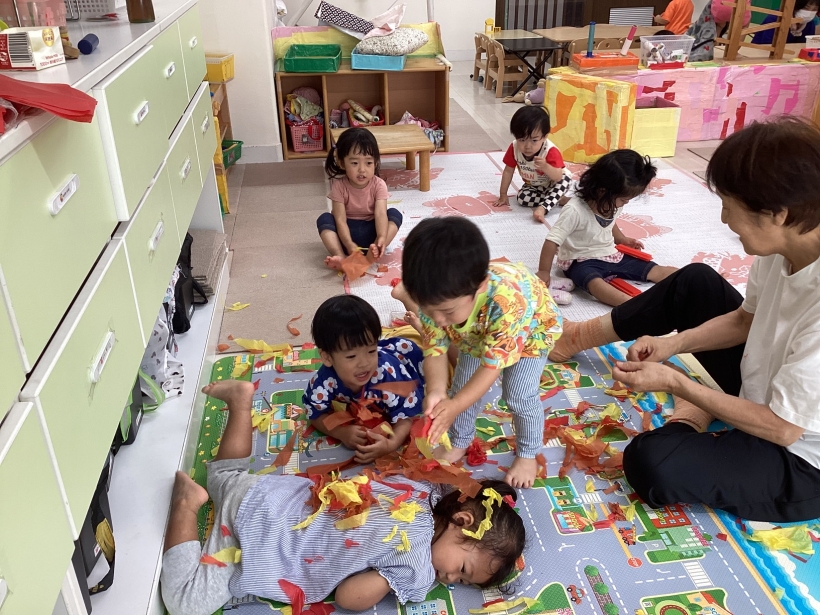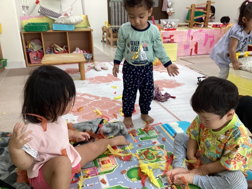 花紙をちぎってかくれんぼしたり、掛け合ったりして遊びました。