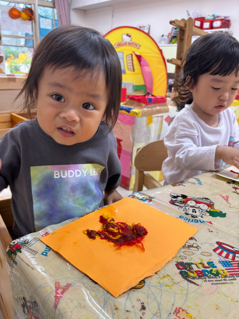 花紙を上からかけると、「あめだー!」と嬉しそうにしていましたよ。