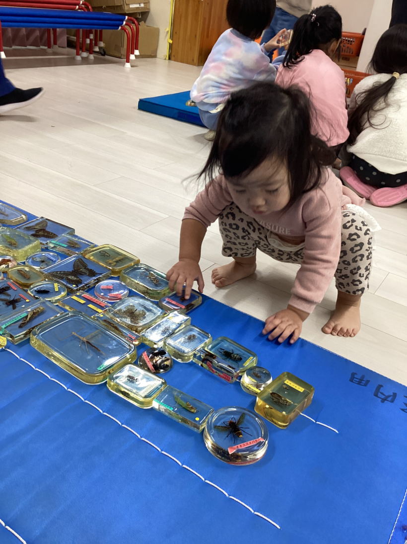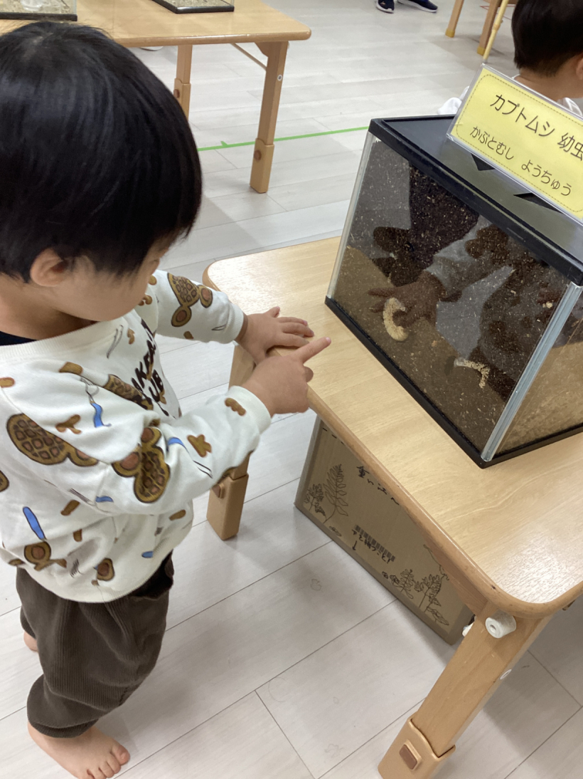 展示してある虫を見ると興味津々でした。