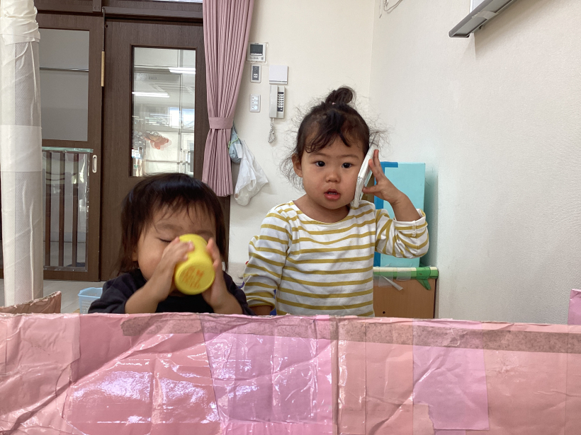 園庭でもお部屋でも自分の好きな遊びを見つけて楽しむ姿や