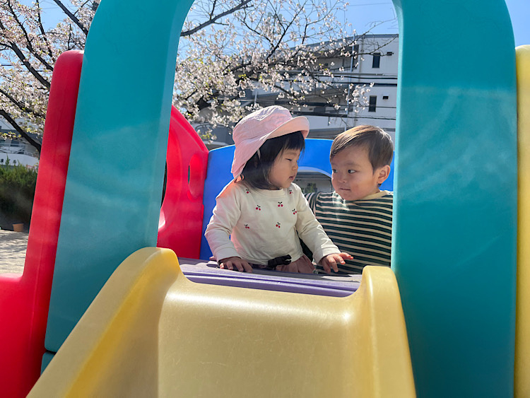 園庭ではお兄ちゃんのお姉ちゃんクラスの子も遊んでいます。