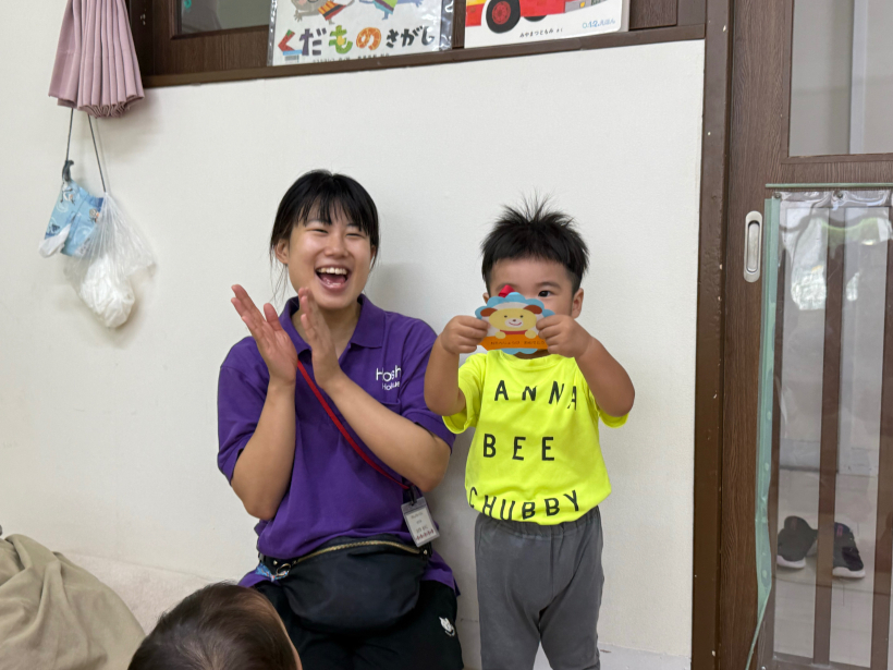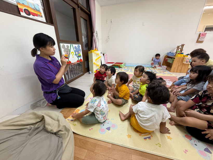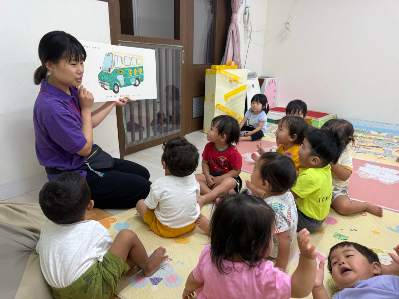 9月の誕生会ははたらく車の絵本と果物の紙芝居でした。