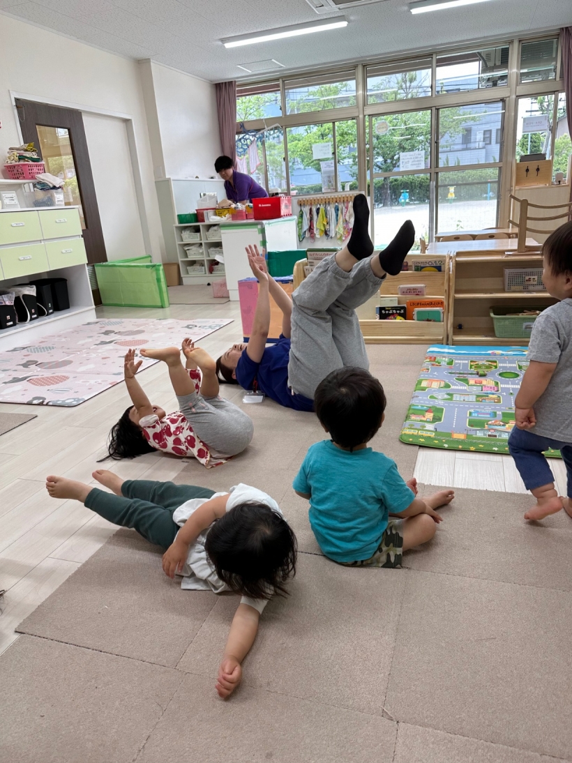 ジャンプしたり、寝転んだり、いろいろな動きを楽しみました。