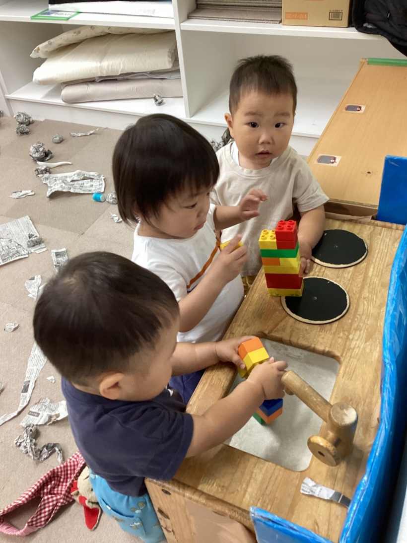 友だちの遊びに興味を持ち、真似をしている姿も見られるようになりました。
