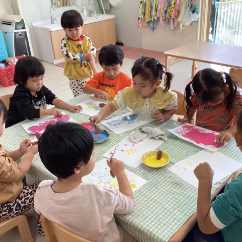 園庭で掘ったお芋を使ってみんなでさつまいもスタンプをしました! 柔ら...