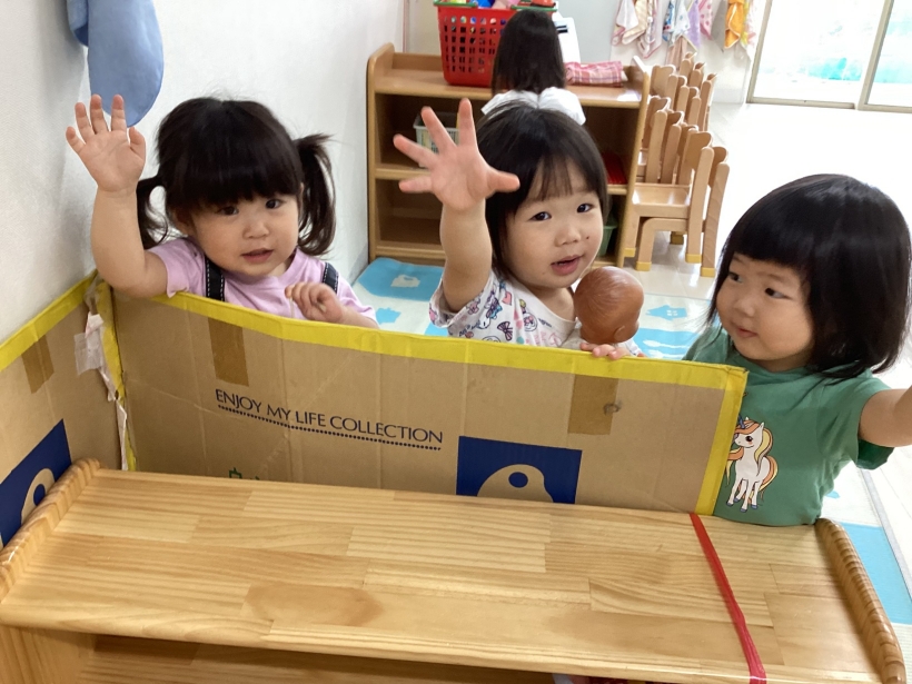 おままごとやブロックなど同じ遊びを一緒にすることを楽しんでいます。