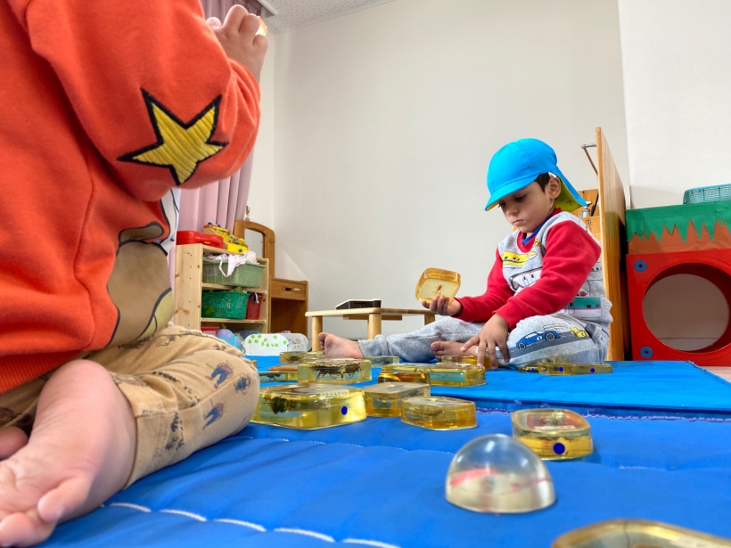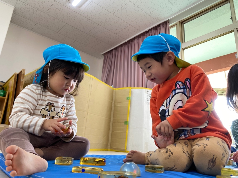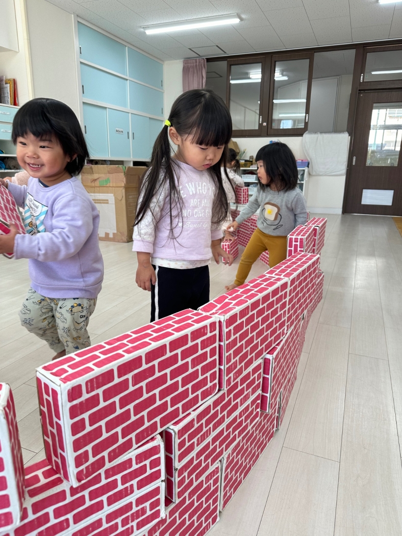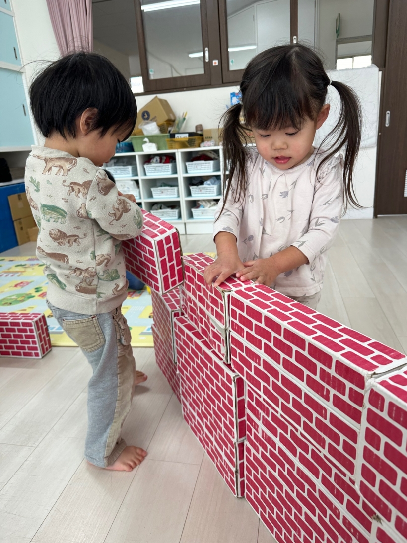 並べたり、積んだりしながらみんなで協力して、お家を作って楽しみました。